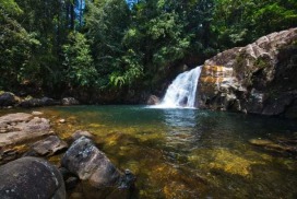 In the vicinity of the rain forest is - surrounded by tropical nature - this seven-step waterfall.